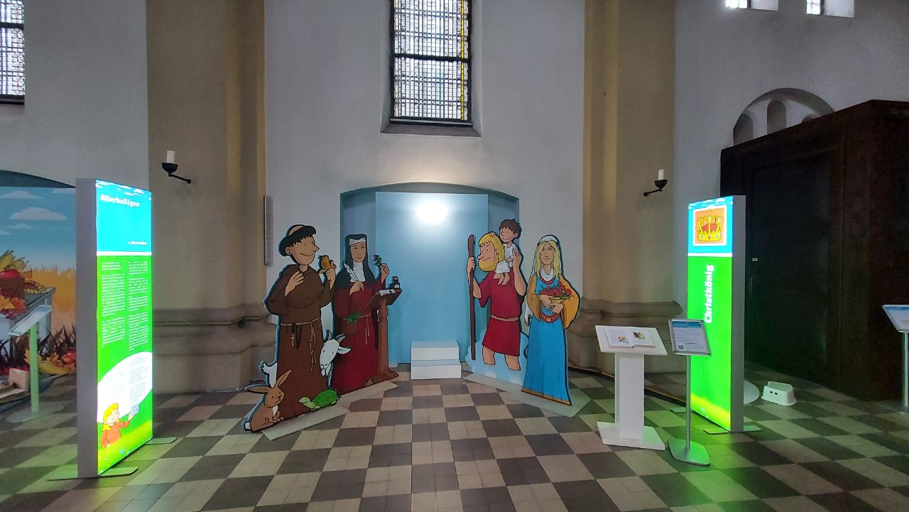 Auch Erwachsene haben in der Erlebnisausstellung „Zwischen Himmel und Erde – christliche Feste spielend verstehen.“ die Möglichkeit, Einblick zu nehmen in den Hintergrund und die Geschichte christlicher Feste und Festzeiten.